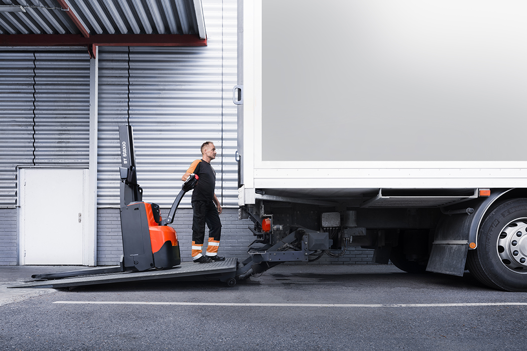 SWE080L har höjbara stödben som underlättar hantering på ojämna golv och ramper.